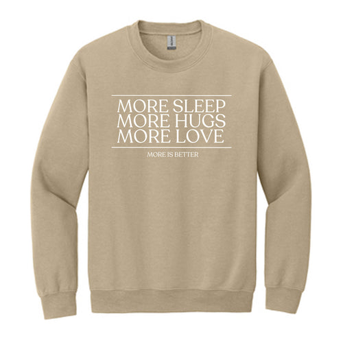 More Sleep, More Hugs, More Love – Sand Crewneck, Cozy Fall Sweatshirt